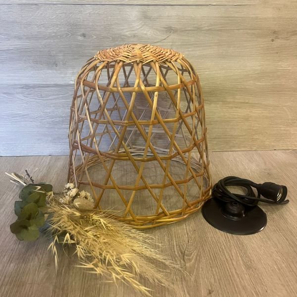 Colgante artesanal de mimbre calado chico modelo Noah de 30 x 30 cm
