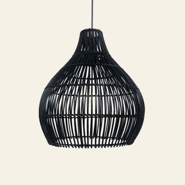 Colgante artesanal Hanoi de ratan negro y estructura metalica de 40 x 42 cm