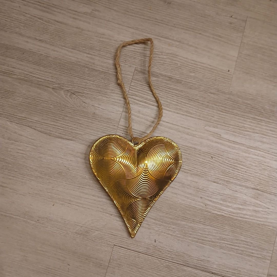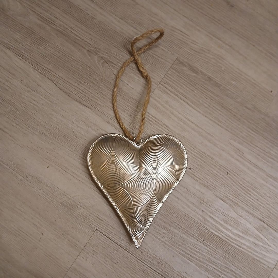 Colgante corazón de metal labrado con tira de yute de 20 cm