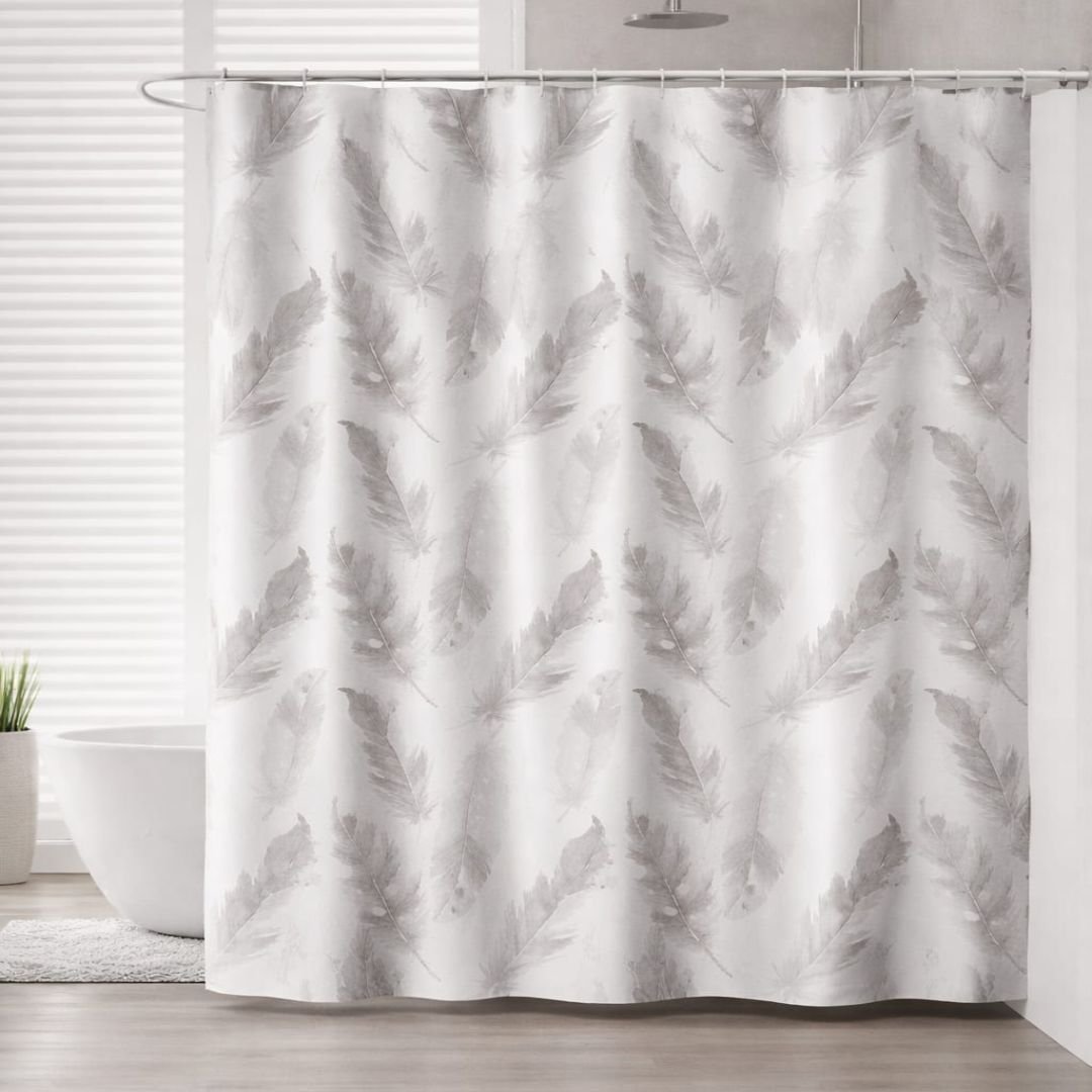 Cortina de baño de poliestileno blanco plumas con 12 ganchos de 180 cm