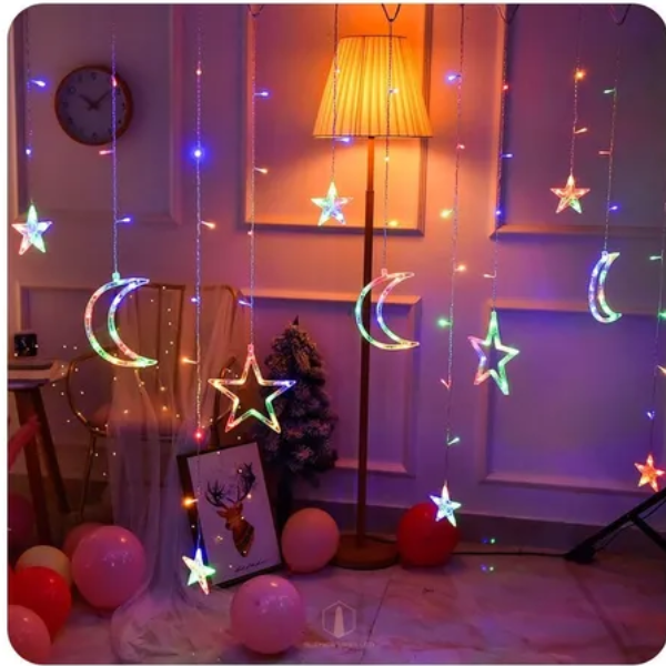 Cortina De Luces LED Multicolor de Estrellas y Lunas Grandes