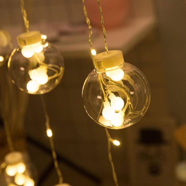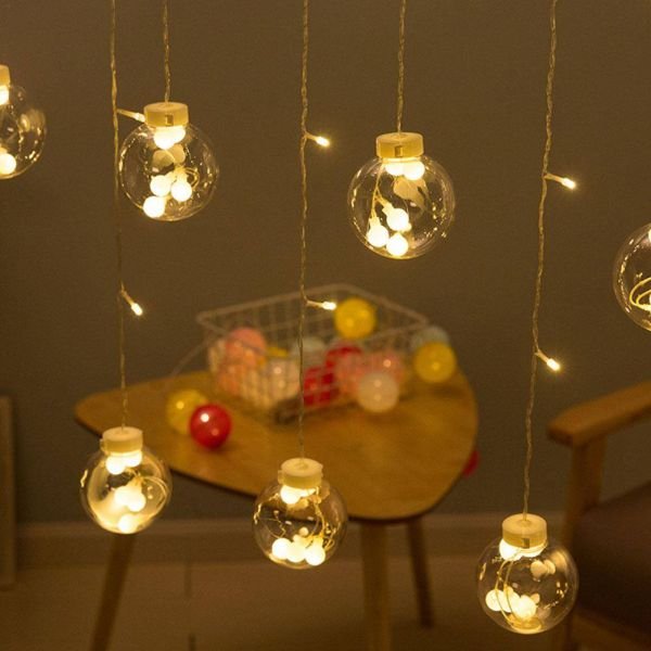 Cortina Led calida de 10 esferas con bolitas de 3 mts