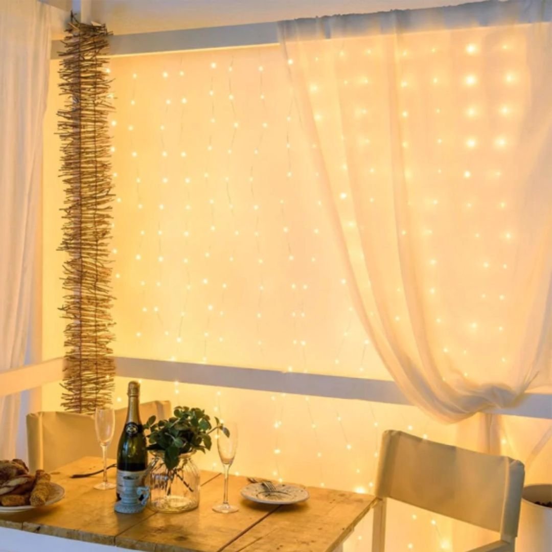 Cortina led de 180 luces cálida cable chato 220v de 3 x 2 mts