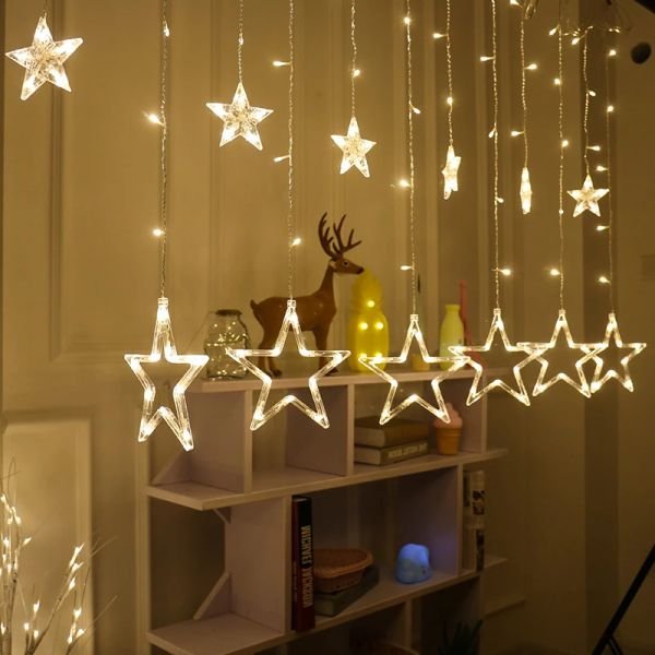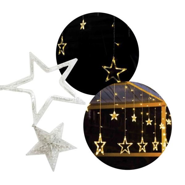 Cortina led de estrellas grandes calidas de 3 x 0.80 mts