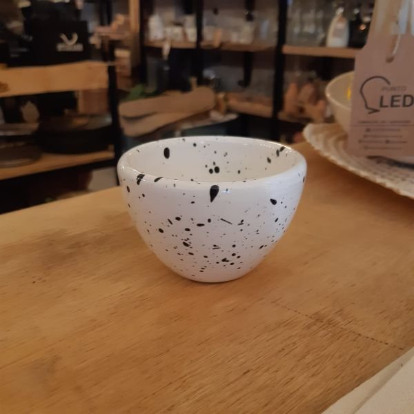 Cuenco de ceramica blanco salpicado de 8 x 5,5 cm