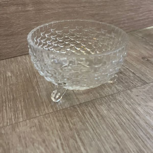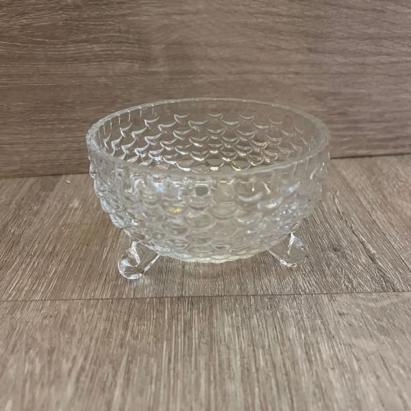 Envase caramelera / porta vela de vidrio labrado con patitas de 10 x 6 cm