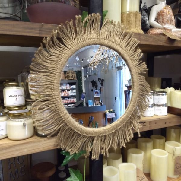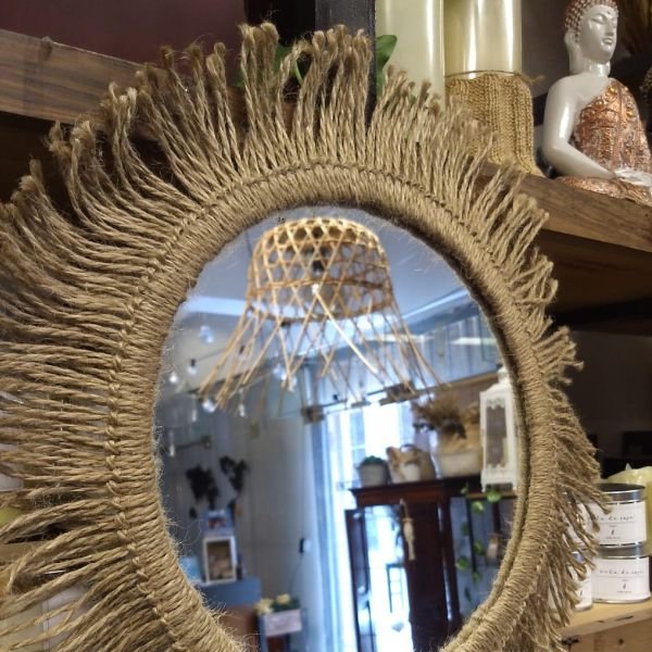 Espejo colgante de hilos de yute en forma circular grande