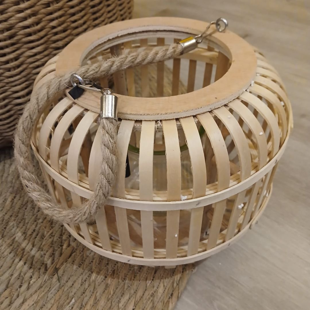 Fanal de fibras naturales calado con manija de soga