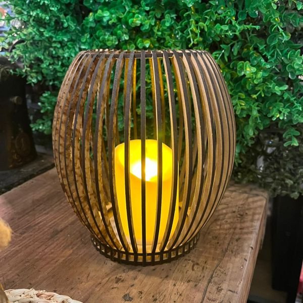 Farol Fanal Porta Vela en Metal Trabajado y Vidrio