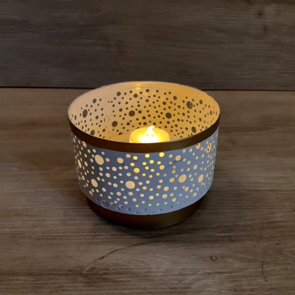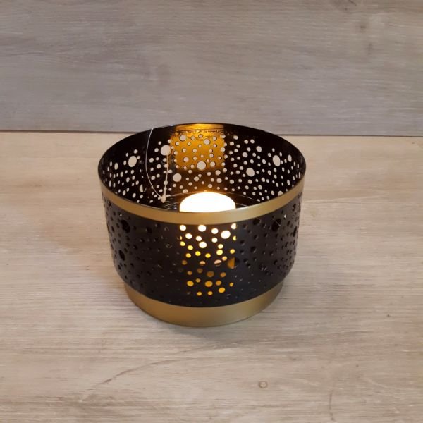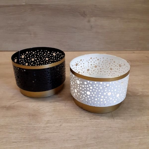 Fanal porta vela metalico calado combinado con dorado en 2 colores de 8 x 13 cm