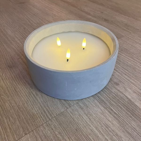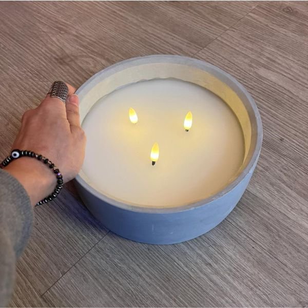 Fanal velas led efecto fuego a pila en base de cemento crudo de 20 x 7,5 cm