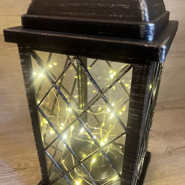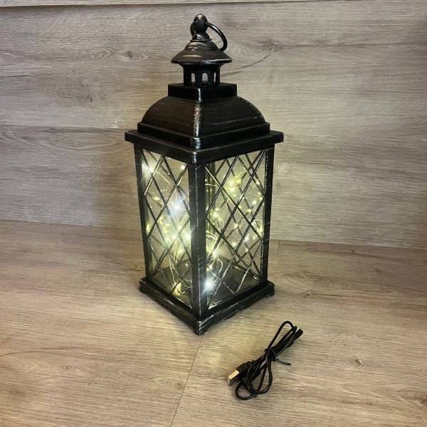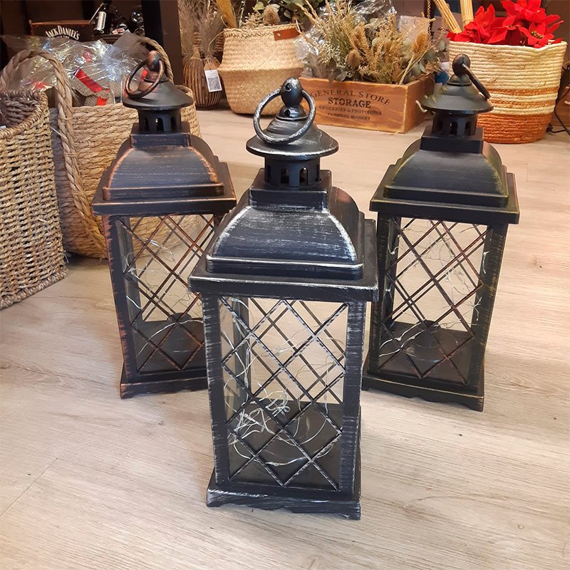Farol fanal enrejado de plástico con hilo Led luz calidad color negro de 12 x 34 cm