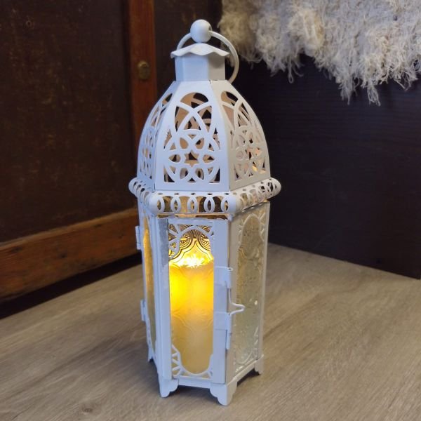 Farol / Fanal portavela metalico blanco Ramadan mediano