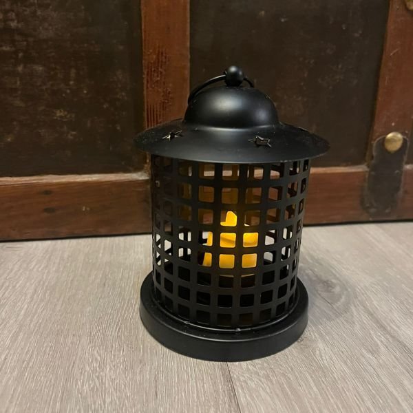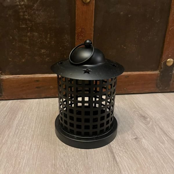 Farol porta vela en metal calado estilo antique negro mate