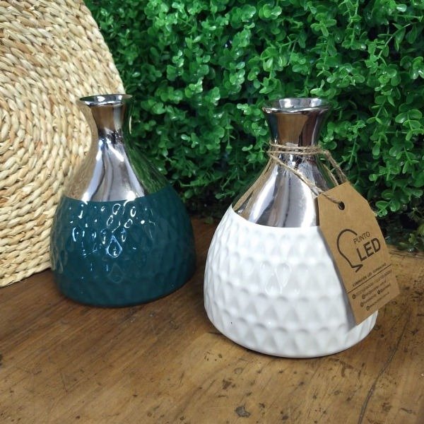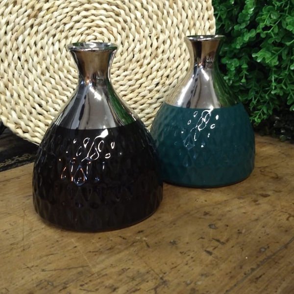 Florero de cerámica combinado en verde, negro o blanco con pintura metalizada de 13 x 15 cm
