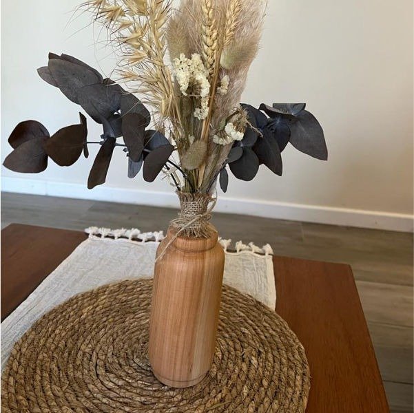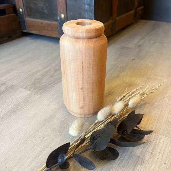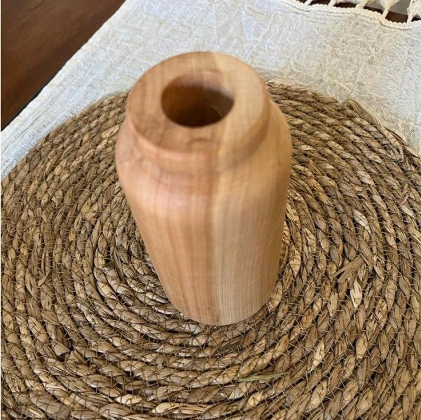 Florero estilo nórdico de madera torneada de una sola pieza.