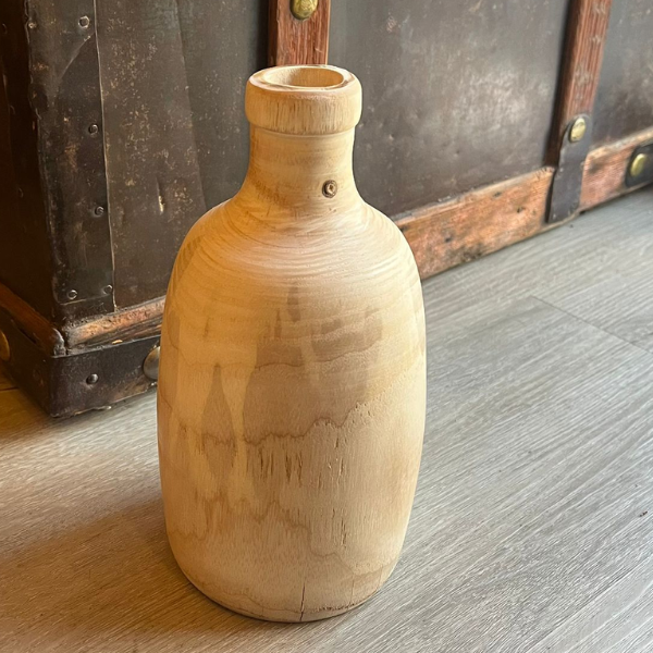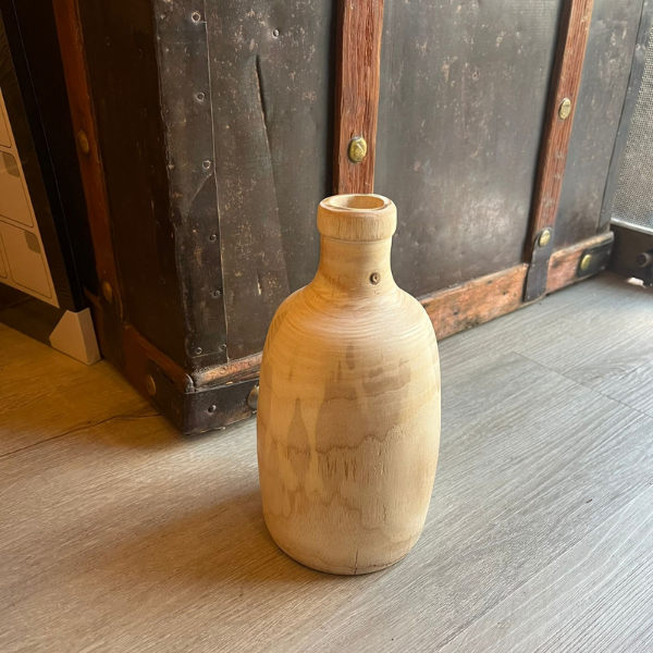 Florero estilo nórdico de madera torneada de una sola pieza.