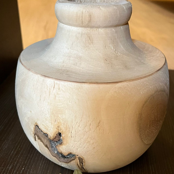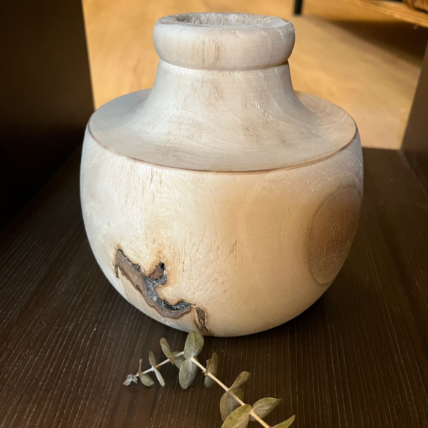 Florero estilo nórdico de madera torneada de una sola pieza.