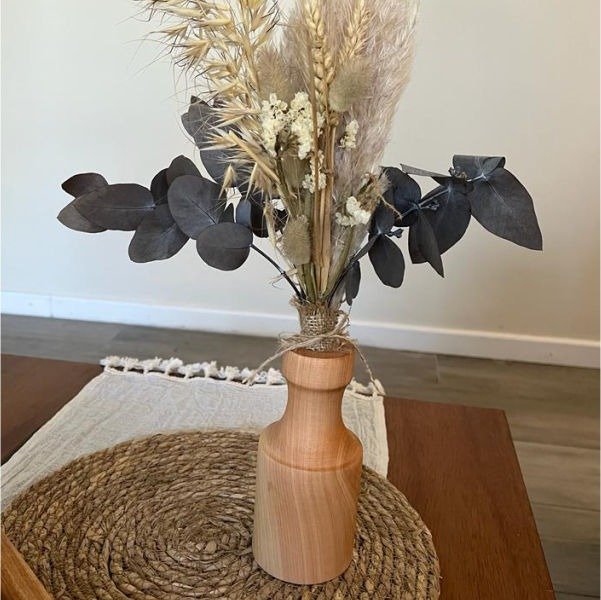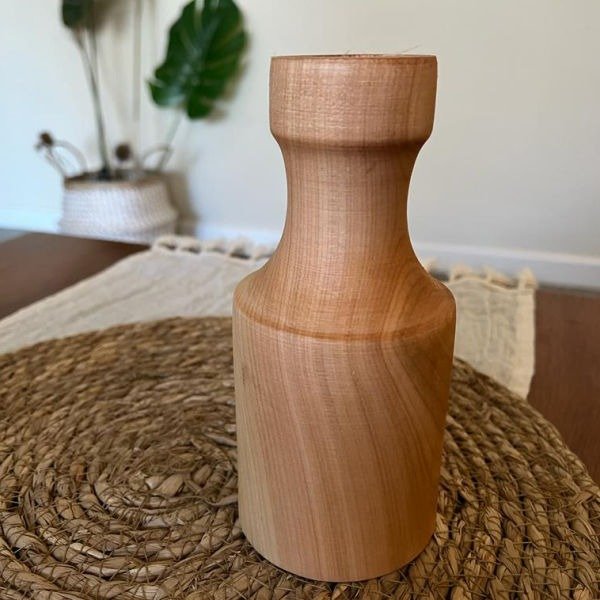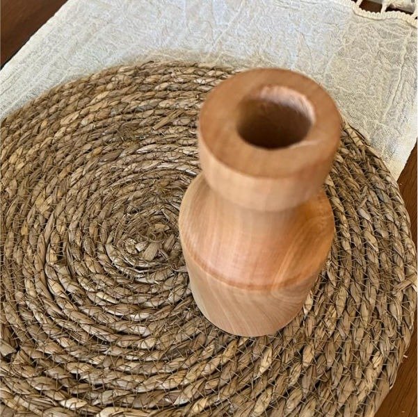 Florero estilo nórdico de madera torneada de una sola pieza.