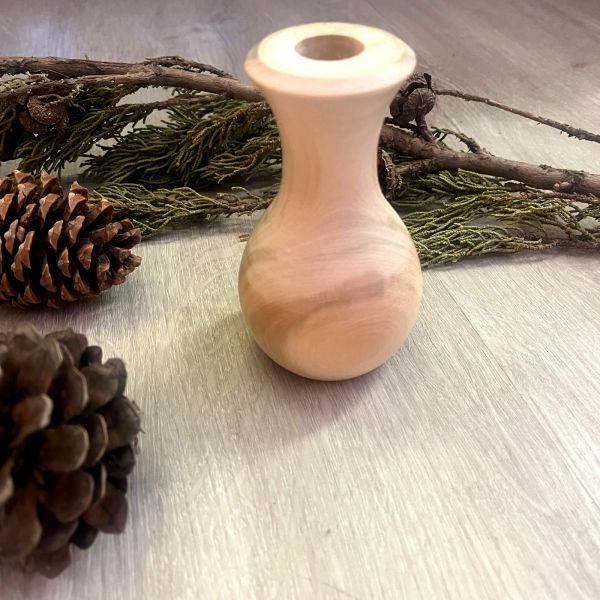 Florero estilo botella modelo Ulven de madera torneada de una sola pieza.