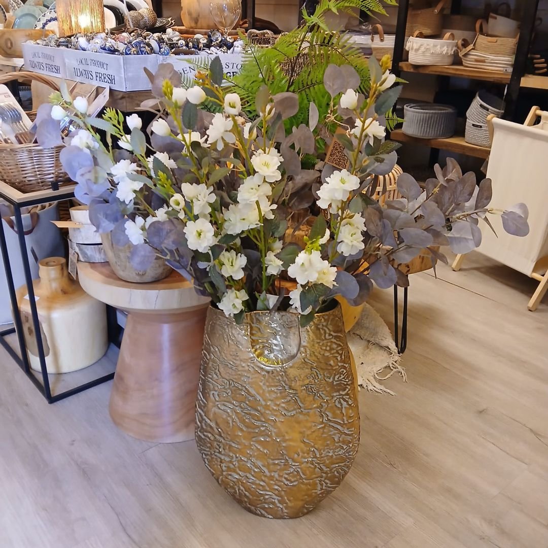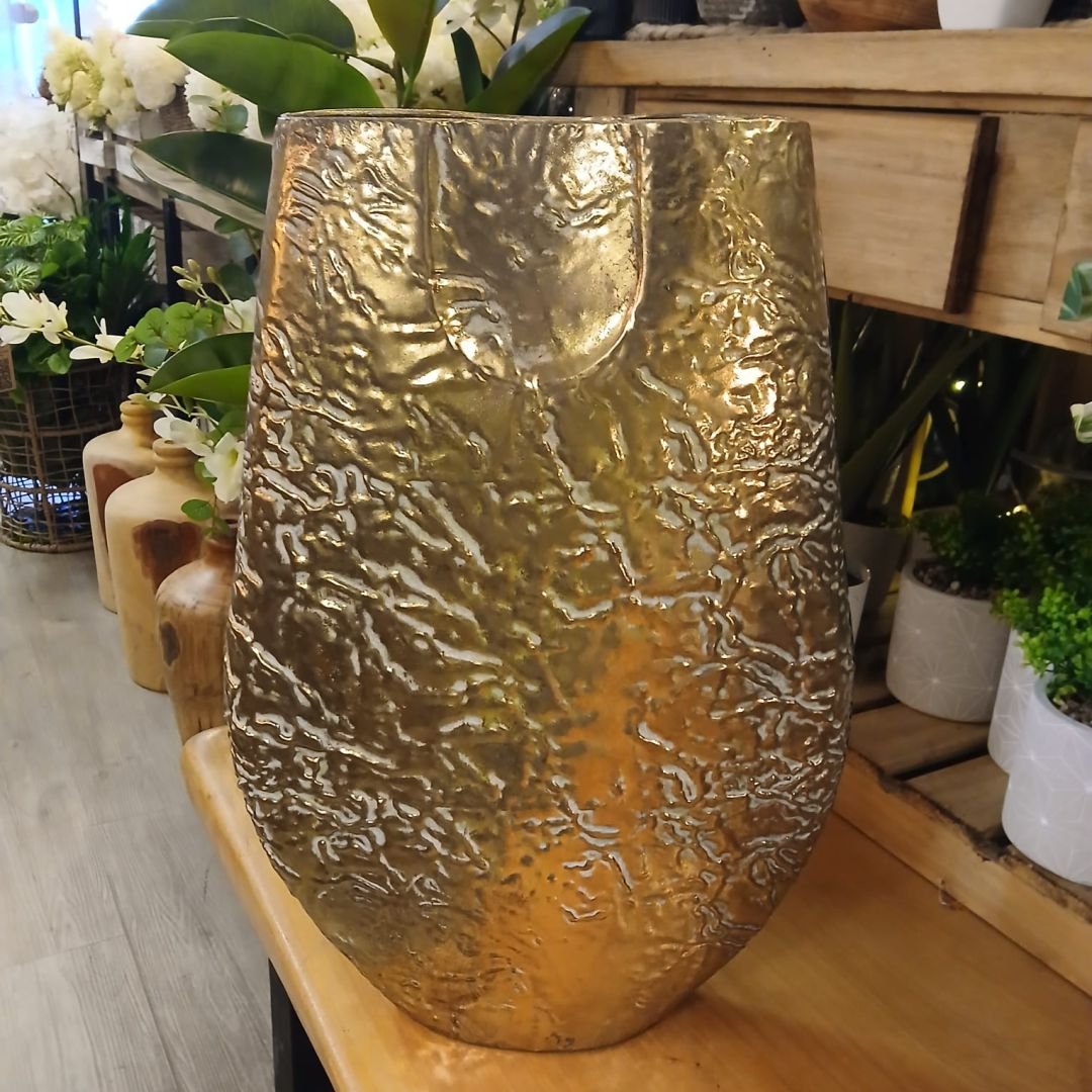 Florero de metal labrado color dorado de 50 cm