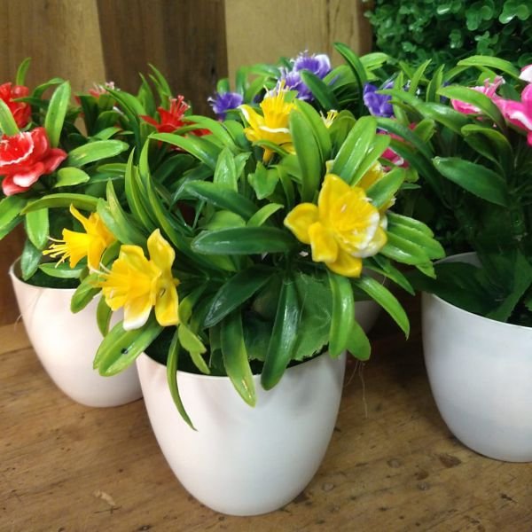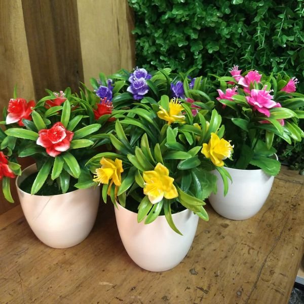 Flores artificial en maceta de plástico en varios colores