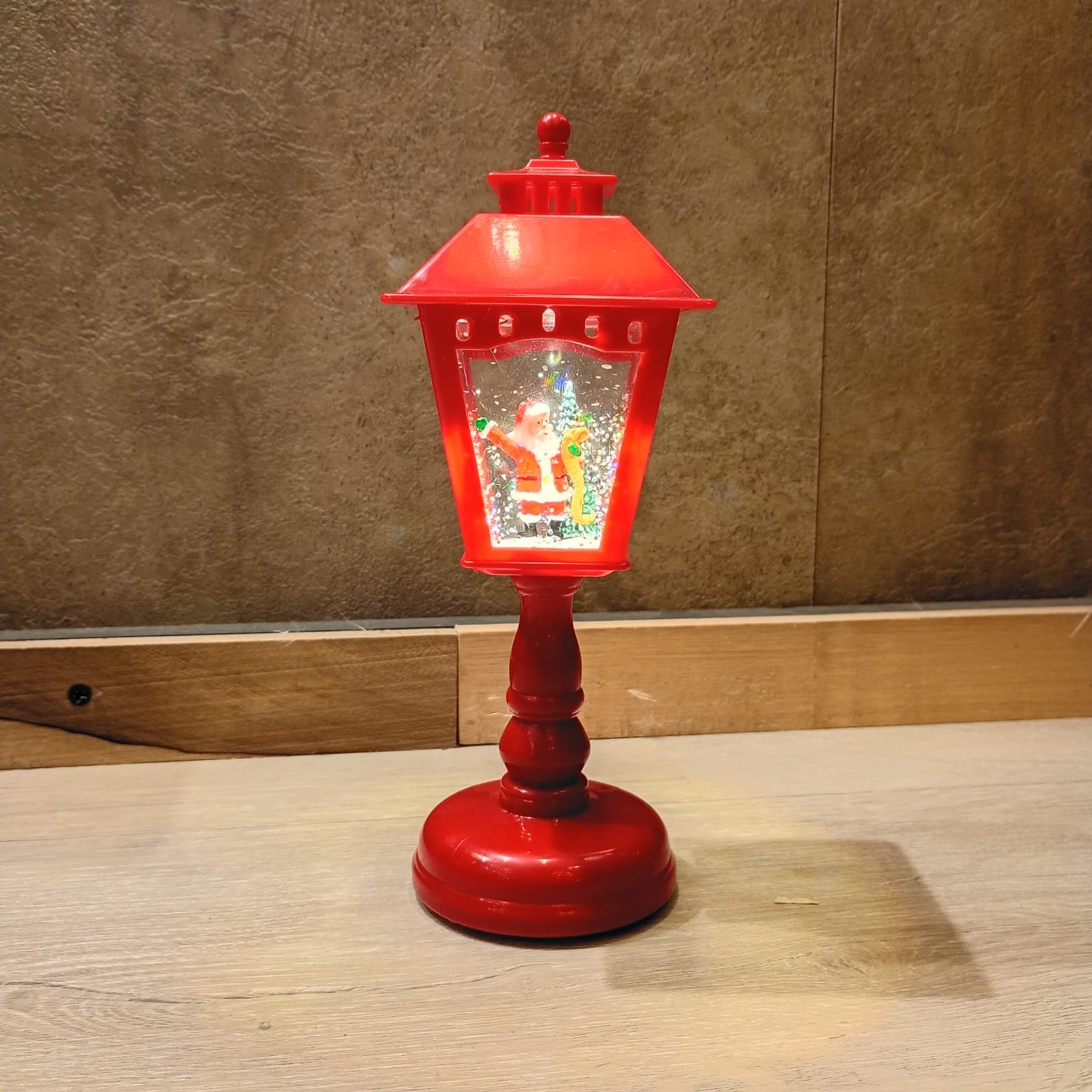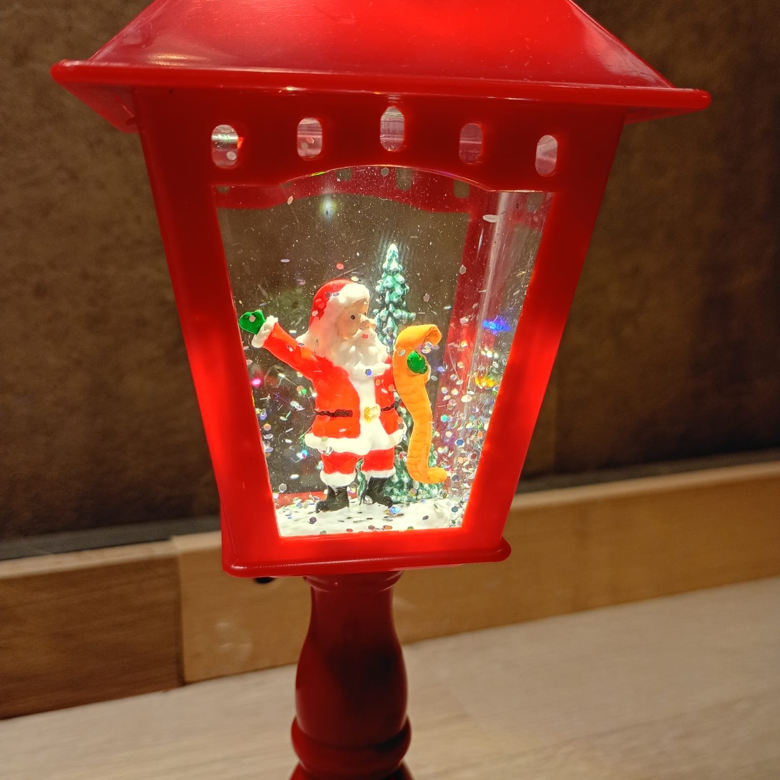 Dale vida a tu decoración navideña con esta hermosa casita iluminada. Fabricada en resina y plástico, presenta una encantadora escena de Papá Noel con un duende en un paisaje nevado lleno de detalles. Sus luces LED de colores y la música integrada crean un ambiente mágico y festivo, ideal para mesas, estanterías o como centro de decoración.