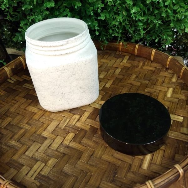 Frasco de vidrio blanco marmol con tapa a rosca 1000cc