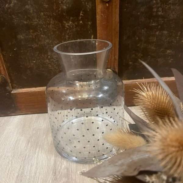 Frasco / florero de vidrio con tapa estilo lechero antiguo con lunares estampados