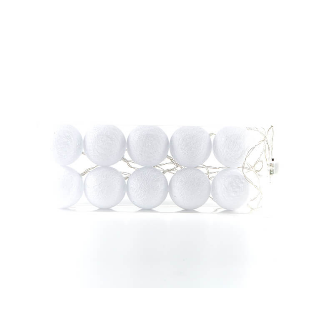 Guirnalada De Esferas Blancas Luz Calida X 2 Mts A Pilas