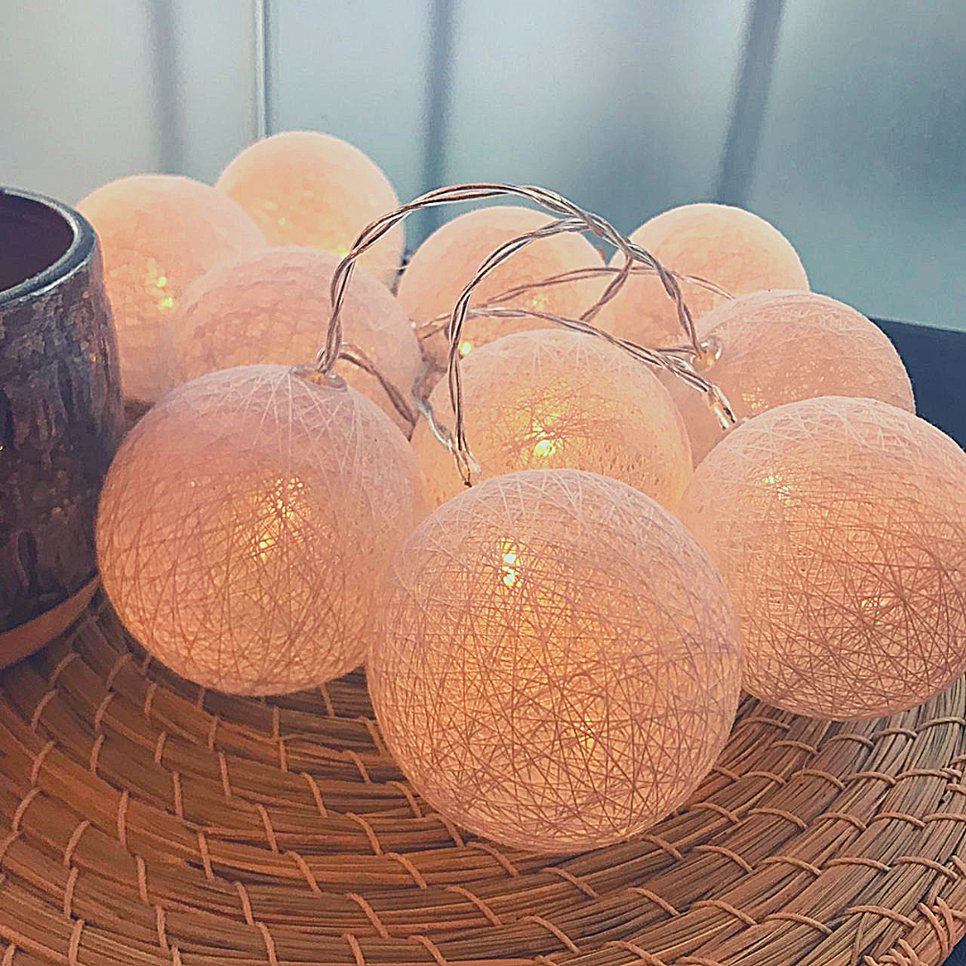 GUIRNALDA DE 10 ESFERAS DE HILO INDOOR 2 Mt LUZ CÁLIDAS.