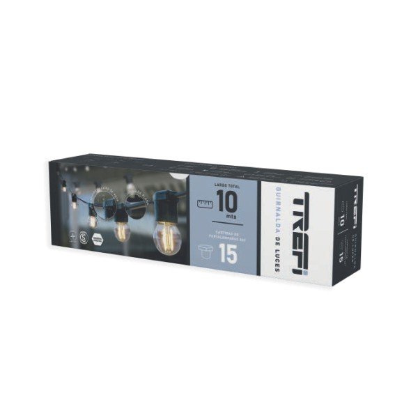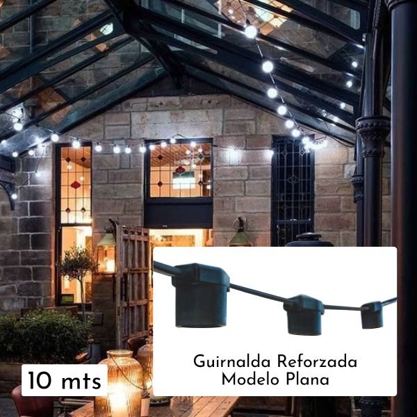 Guirnalda de 10 mts para exterior reforzada Modelo Plana para 15 lamparas