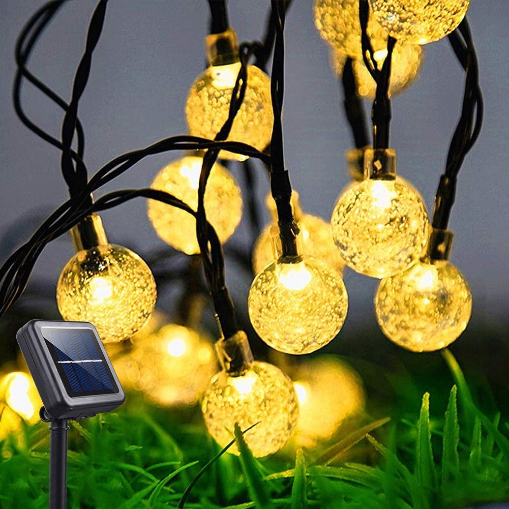 Guirnalda de 20 bolita Led transparente luz cálida solar para exterior