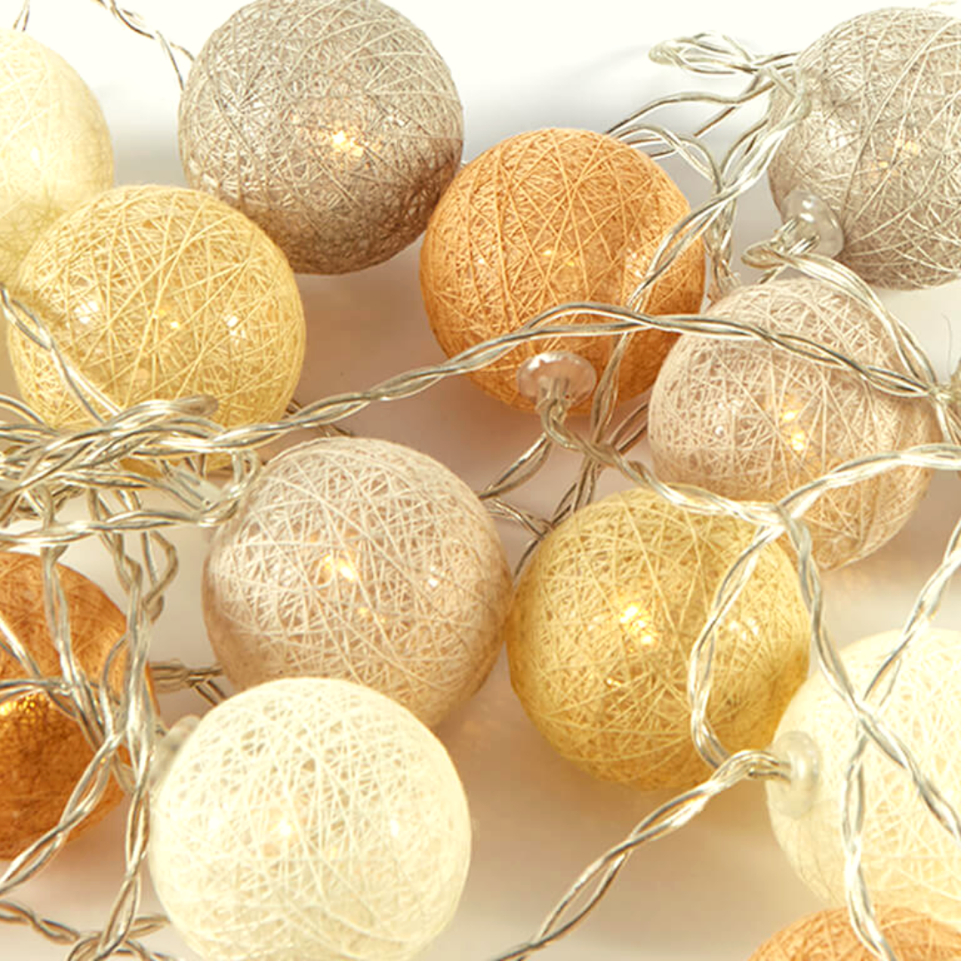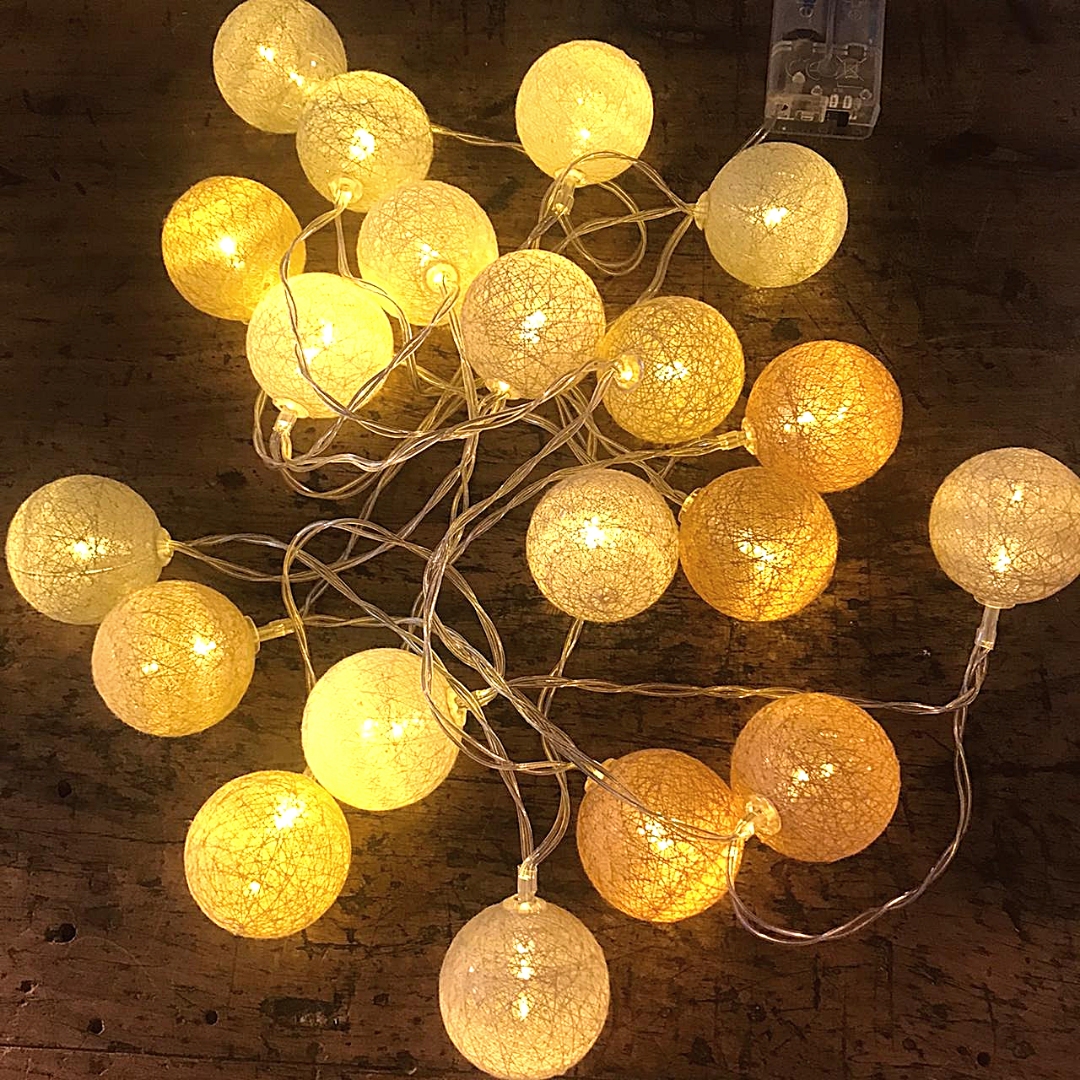 GUIRNALDA DE 20 ESFERAS DE HILO INDOOR 2 Mt LUZ CÁLIDAS.