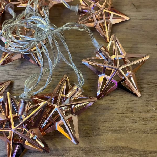 Guirnalda de Estrellas gold rose Luz cálida x 2 mts a Pilas