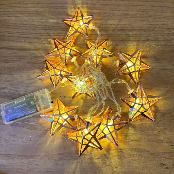 Guirnalda de Estrellas gold rose Luz calida x 2 mts a Pilas