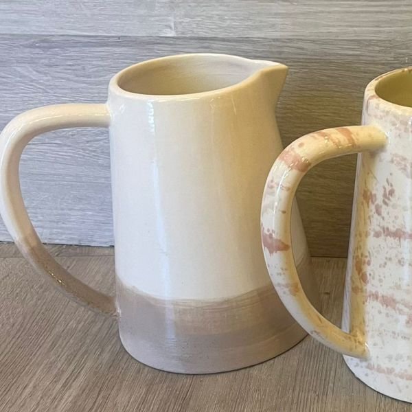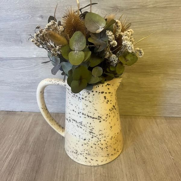 Jarra de cerámica ideal para agua, jugo, flores o flores secas decorativas.
