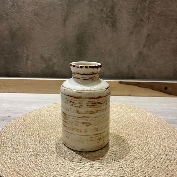 Jarron florero de ceramica jaspeado estilo botella antigua de 8,5 x 13 cm