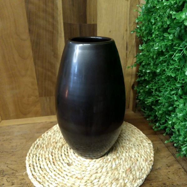 Jarron / Florero de ceramica liso negro de 14 x 28 cm