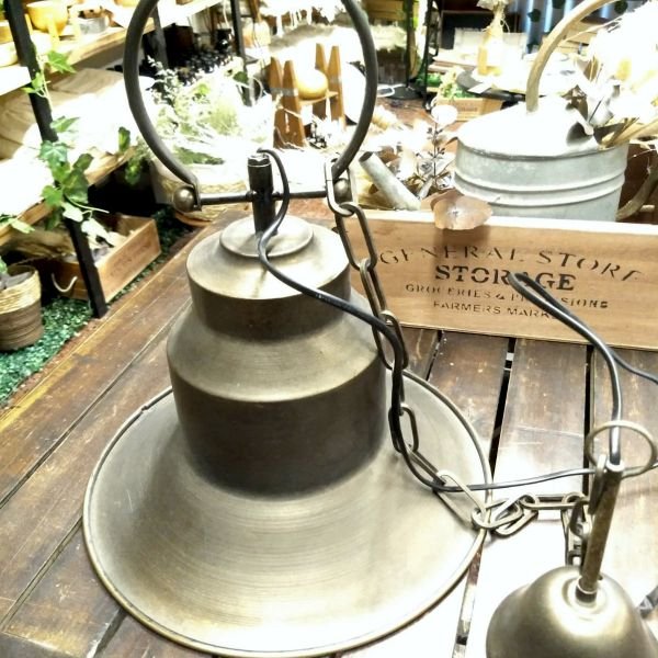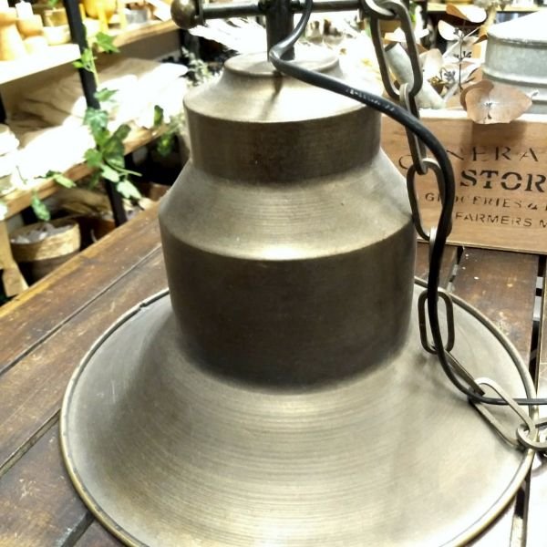 Lampara colgante estilo campana antiguo en hierro color bronce