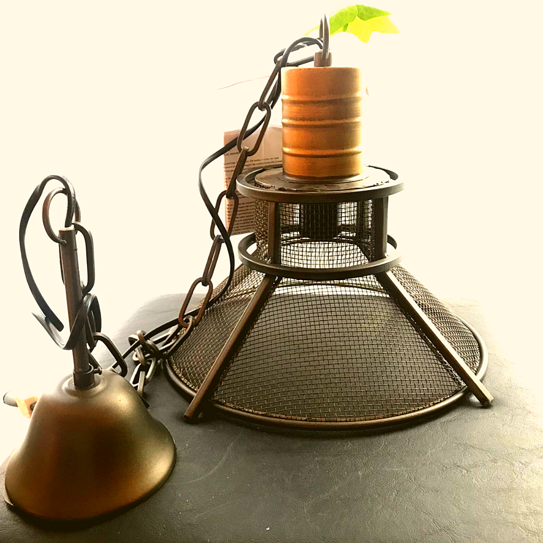 Lampara Colgante Estilo Industrial en Bronce y Alambre tipo Granero Conica