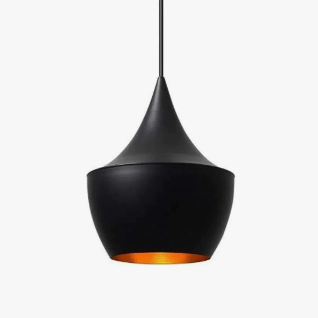 Lámpara colgante de chapa negra con interior tipo cobre.