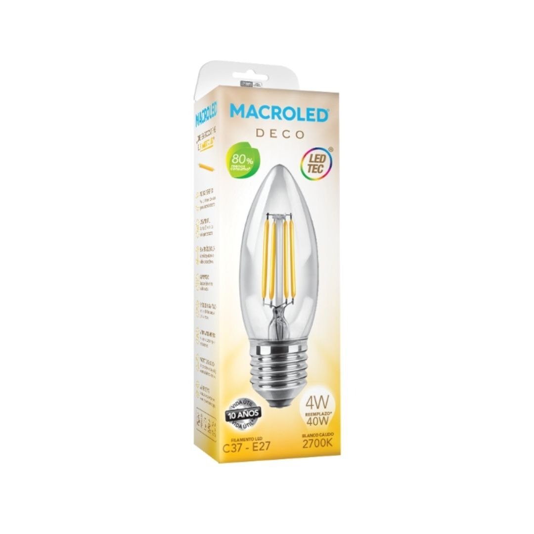 Lampara Filamento Led Vela Vintage 4W Luz Calida Macroled