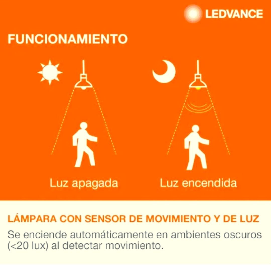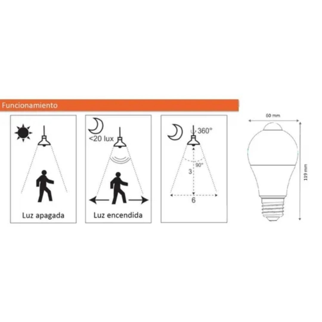 Lampara Led C/Sensor Mov y Fotocelula 9W Bulbo Luz Fria Osram