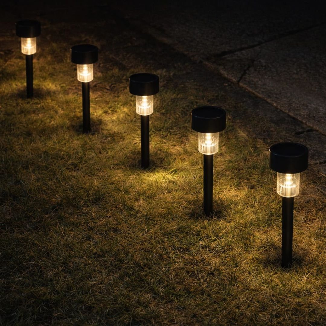 Lampara estaca solar de jardín elegante de luz tenue led cálida.