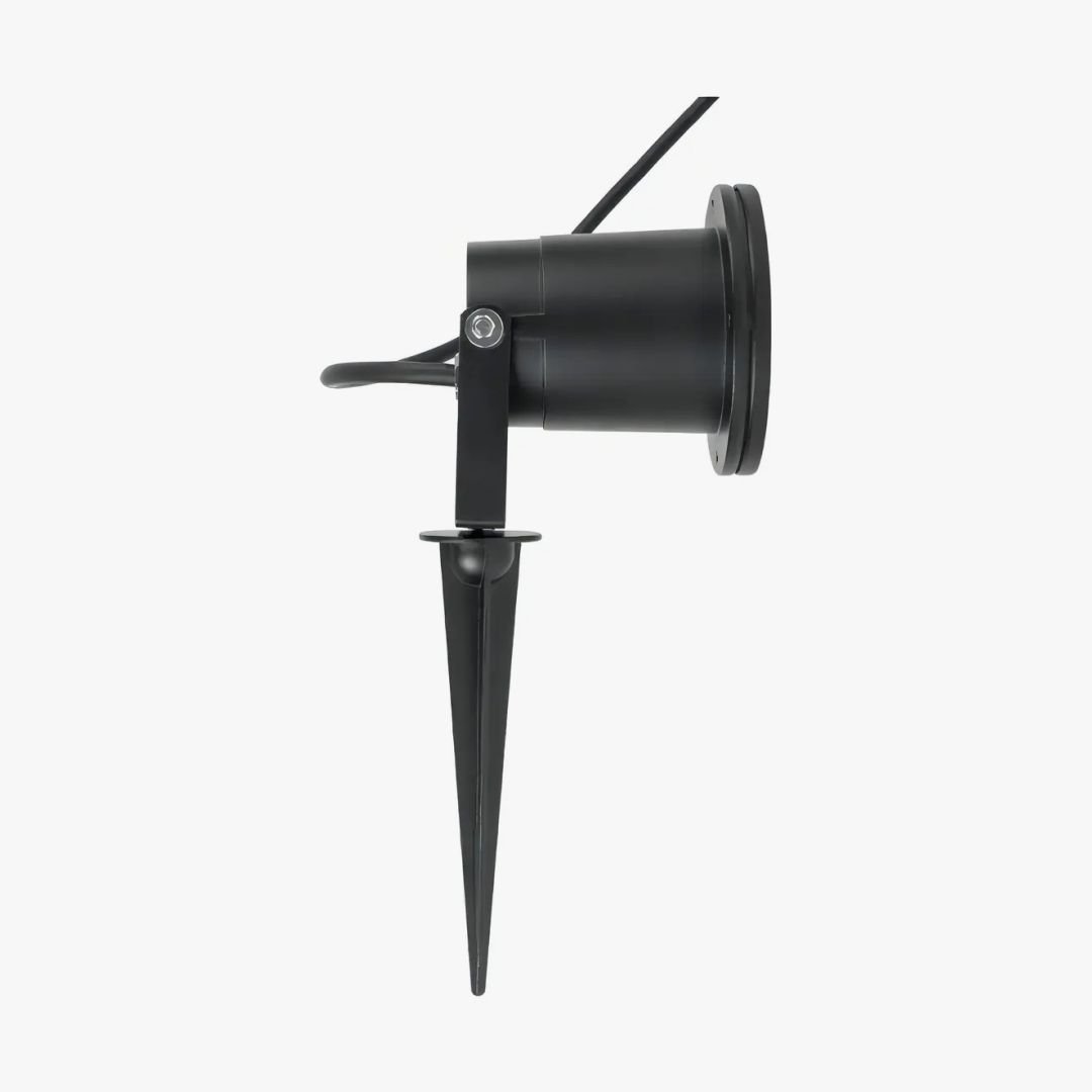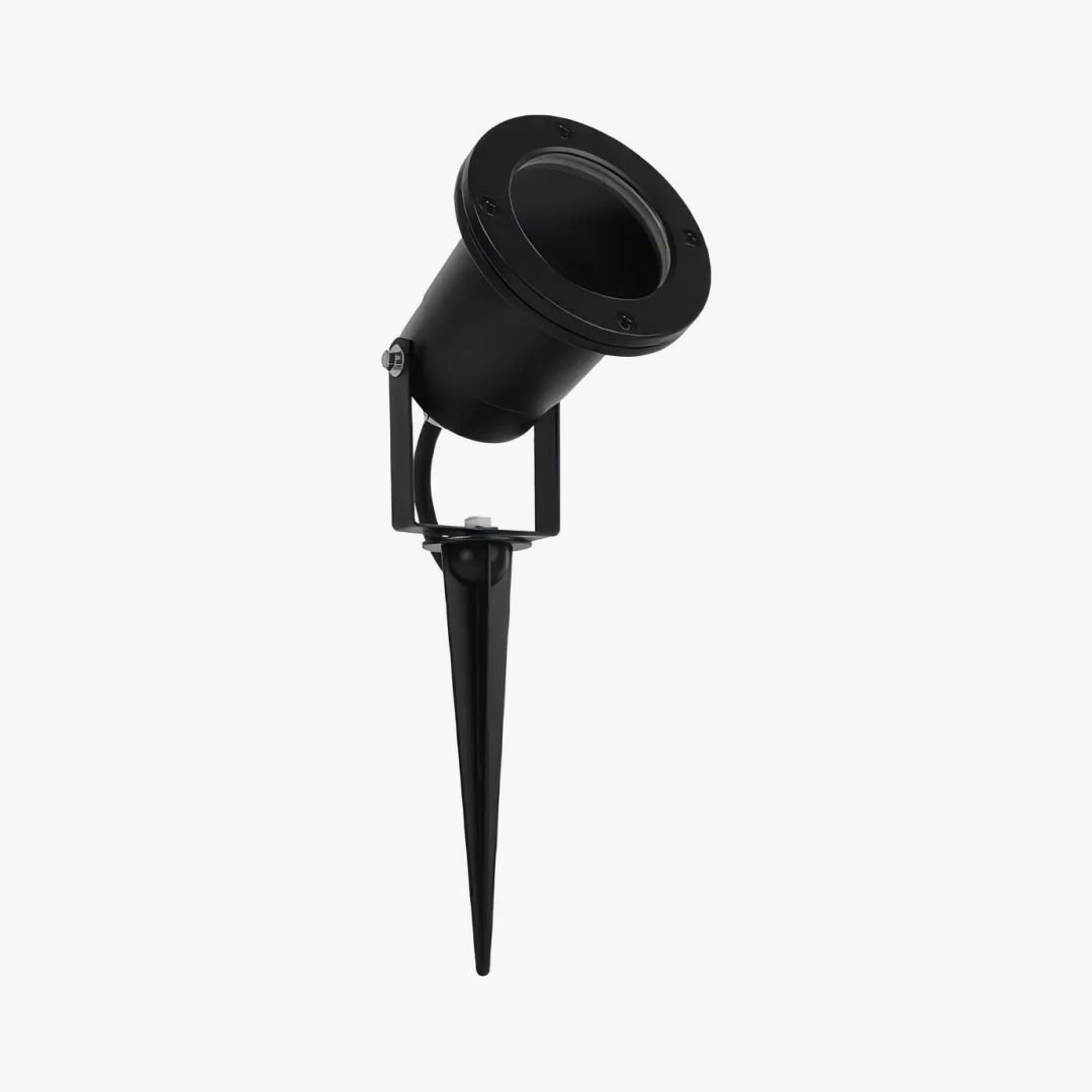 Artefacto para dicroica led (no incluida) de aluminio exterior IP65 con estaca ideal para jardín o delimitación de fachada.