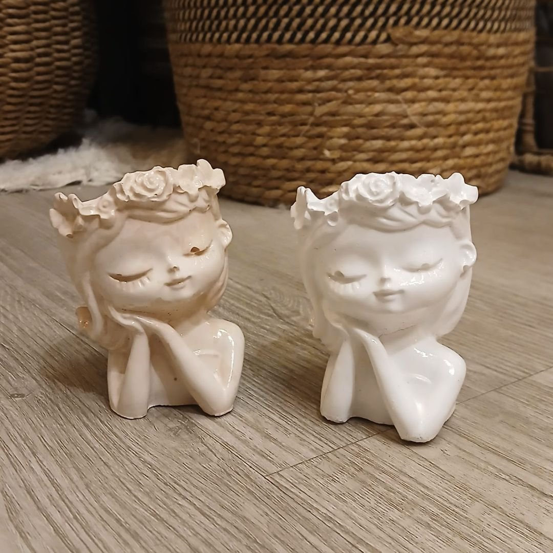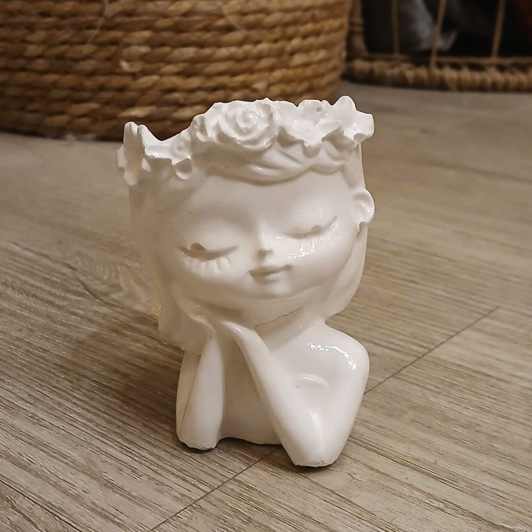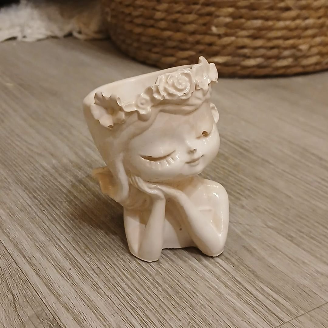 Maceta de cemento pintado nena soñadora de 7 x 9,5 cm