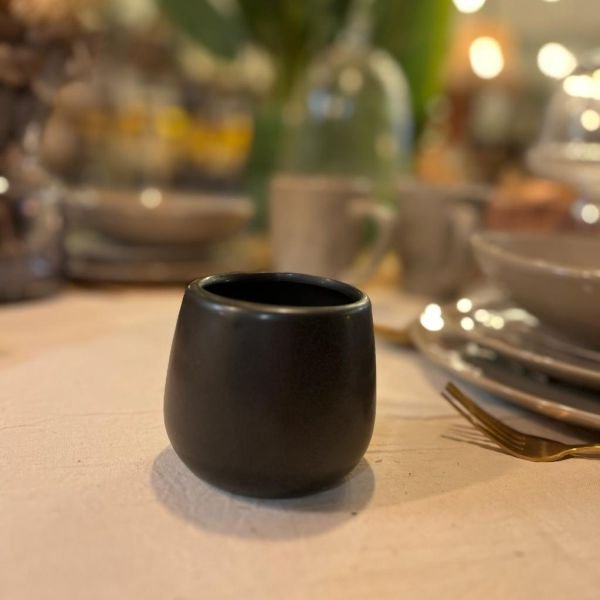 Maceta de ceramica lisa negro satinado de 8 x 7 cm