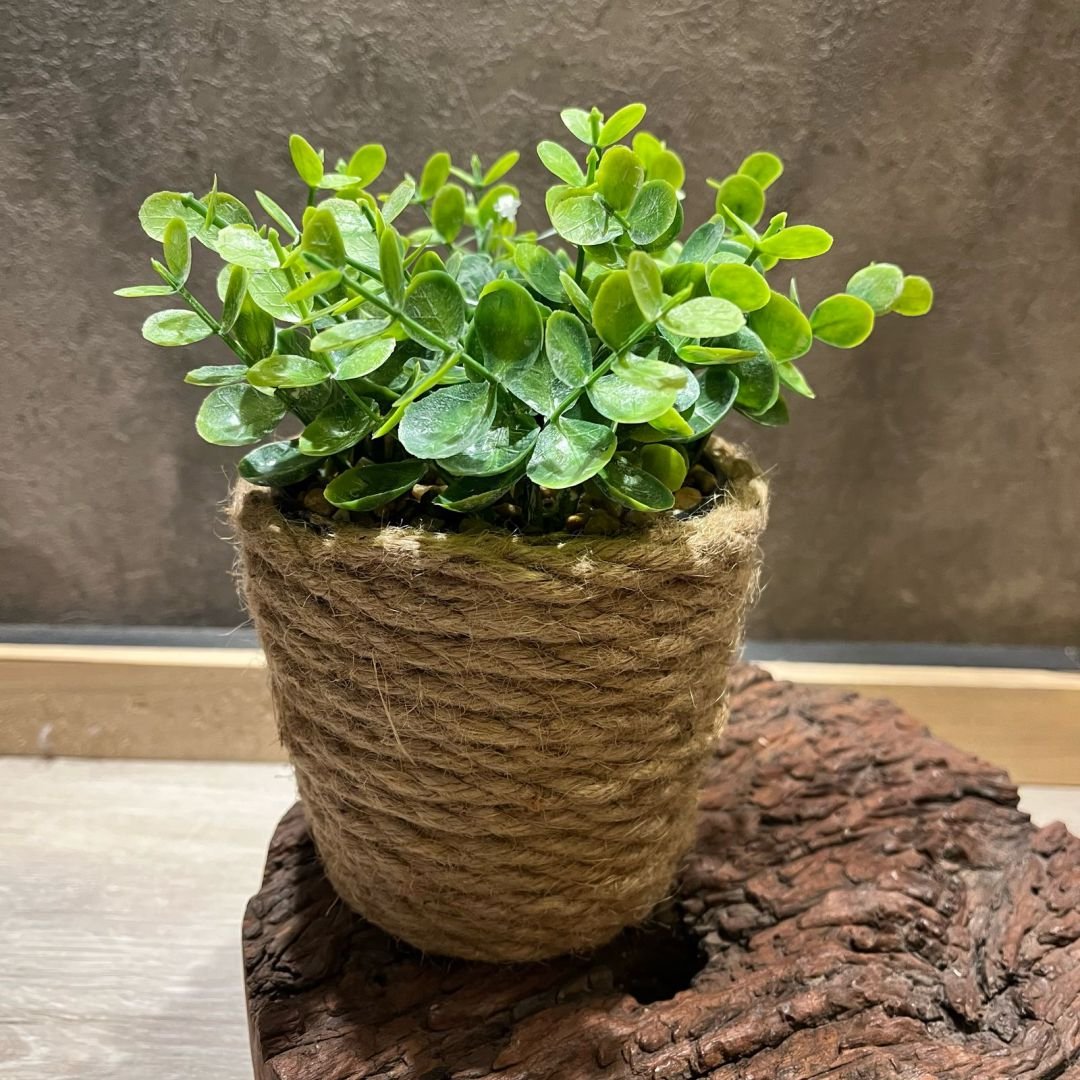 Planta chica artificial con maceta de soga de yute de 11 x 19 cm