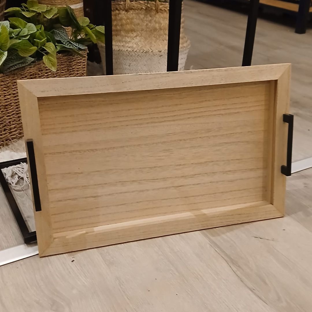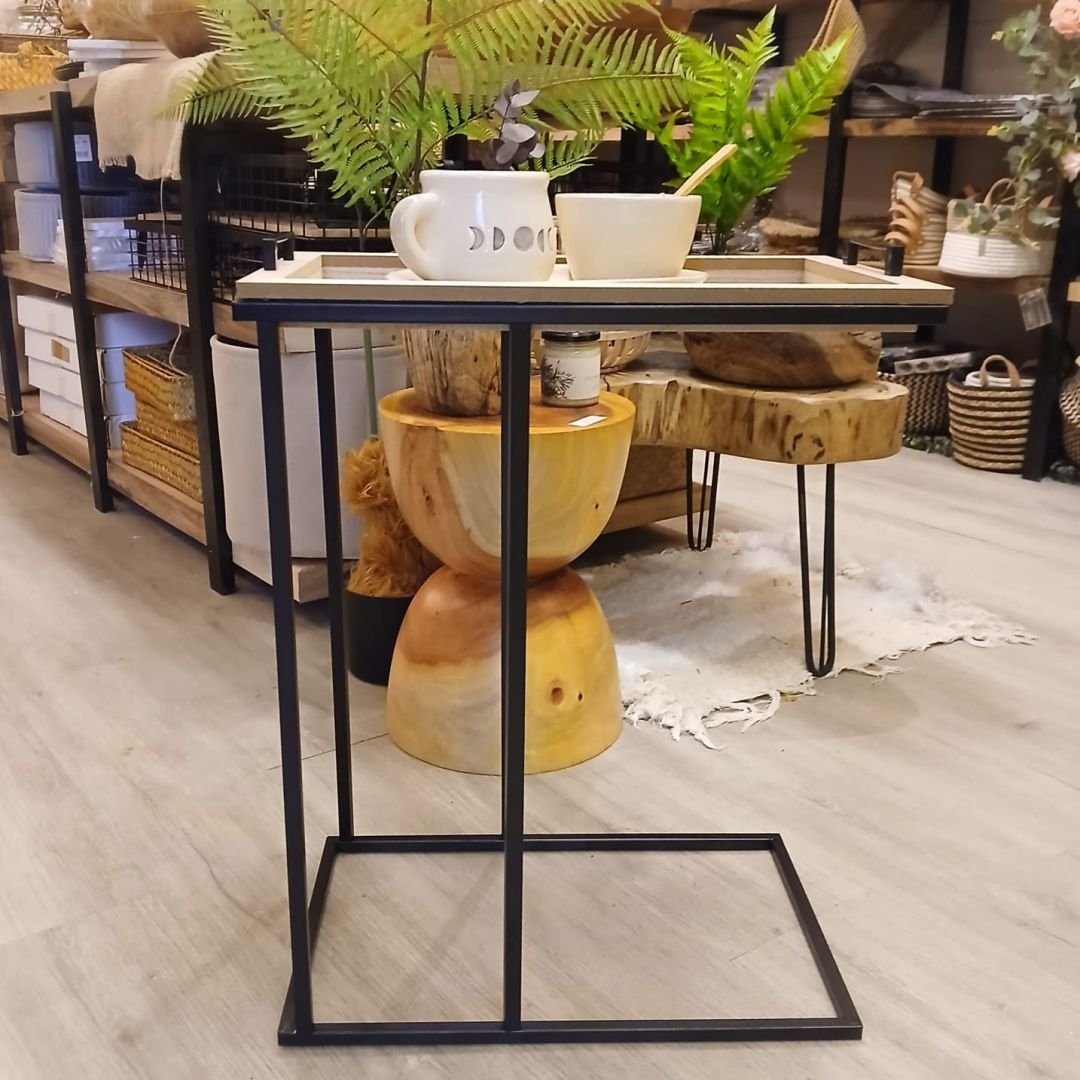 Mesa desayunadora de MDF y estructura de hierro negro. Ideal para arrimar a la cama o al sillón.